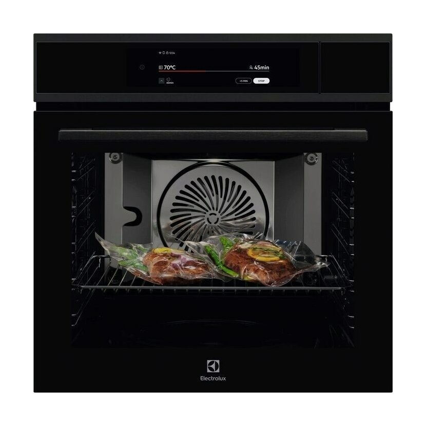 Vestavná trouba s parní funkcí; Electrolux 900 ProAssist SteamPro EOA9S3SH; Šířka (cm): 60; En.třída: A++; Technologie: ProAssist / SteamPro / Wifi; Samočištění: Parní; Vnitřní objem (l): 70; Ovládání: Dotykové intuitivní ovládání, barevný TFT displej, CookSmart Touch +; Teleskopické výsuvy: Ano; Teplotní sonda: Ano; SoftClosing: Ano; Barva: Pure Black; Počet skel: 4; Rozměr VxŠxH (mm): ; Rozsah teplot (°C): 0; 5 let záruka na celý model: Ne